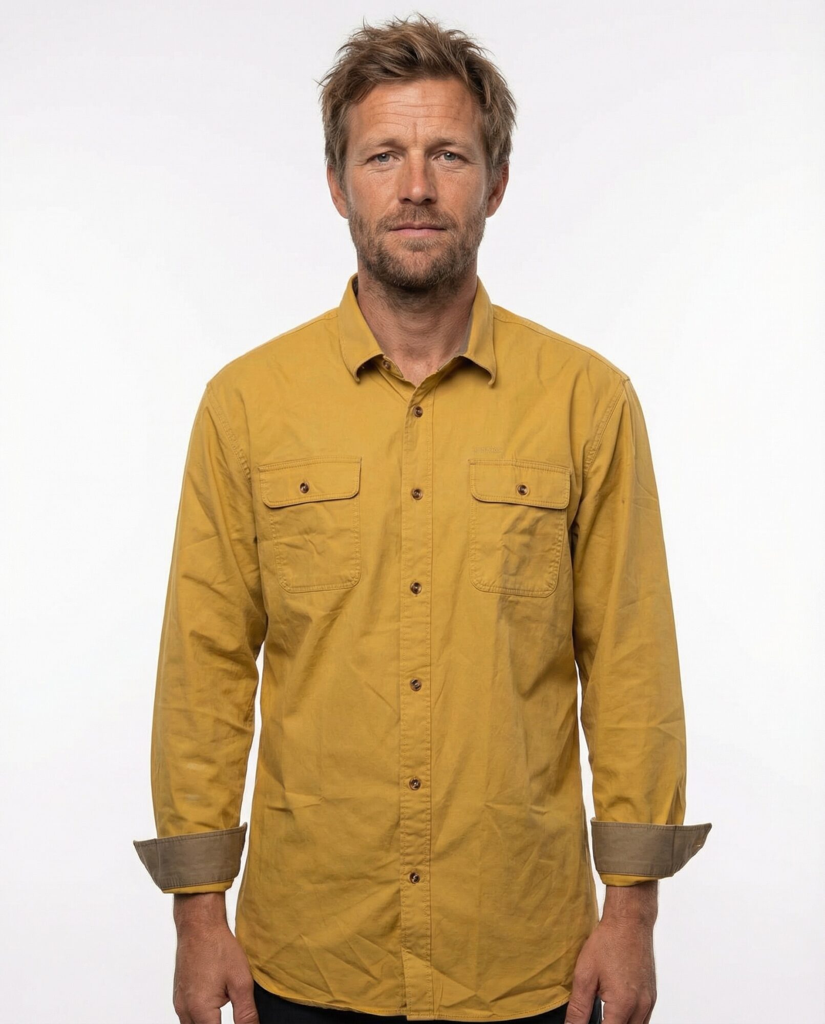 100% brushed cotton shirts. Double chest pockets. Reinforced collar. Double buttons on shirt sleeve. Wash like cotton.