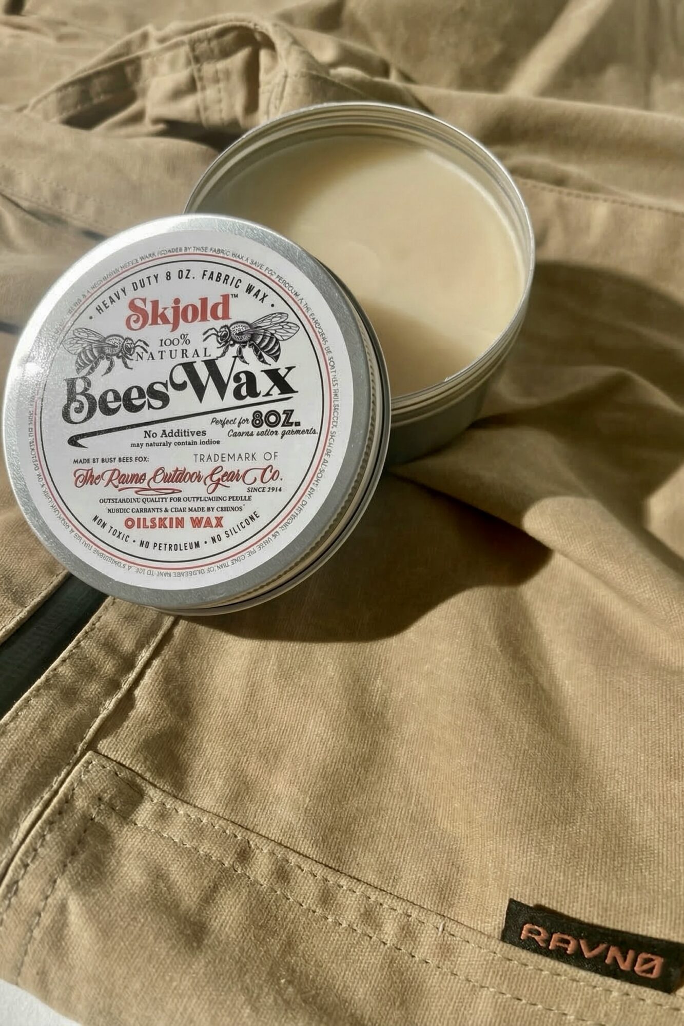 We treat the fabric with natural Greenland Wax, so maintenance stays simple. Most outdoor stores carry Greenland Wax (and Barbour Wax). You can also use our 100% natural wax “Skjold”—guaranteed influencer-free (and free from unnecessary additives).