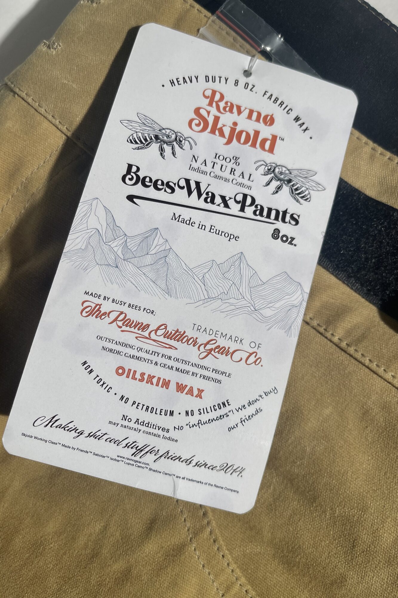 We treat the fabric with natural Greenland Wax, so maintenance stays simple. Most outdoor stores carry Greenland Wax (and Barbour Wax). You can also use our 100% natural wax “Skjold”—guaranteed influencer-free (and free from unnecessary additives).